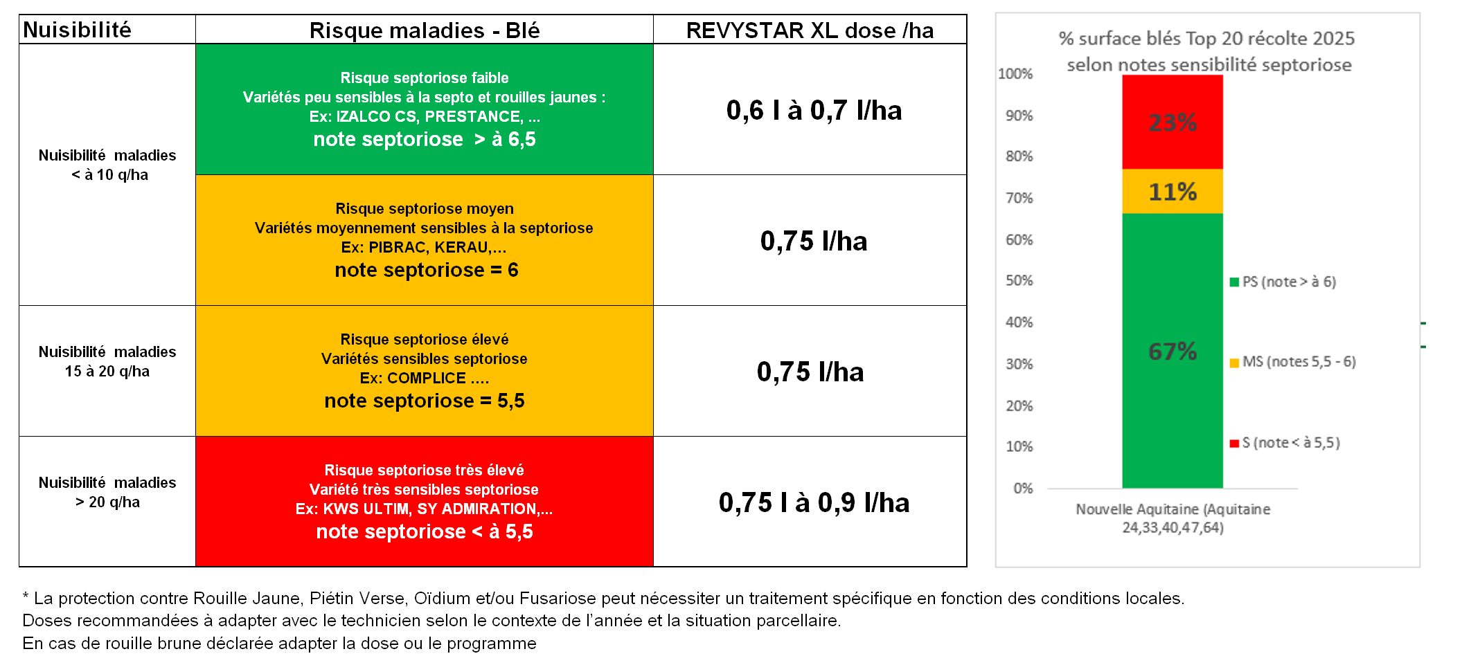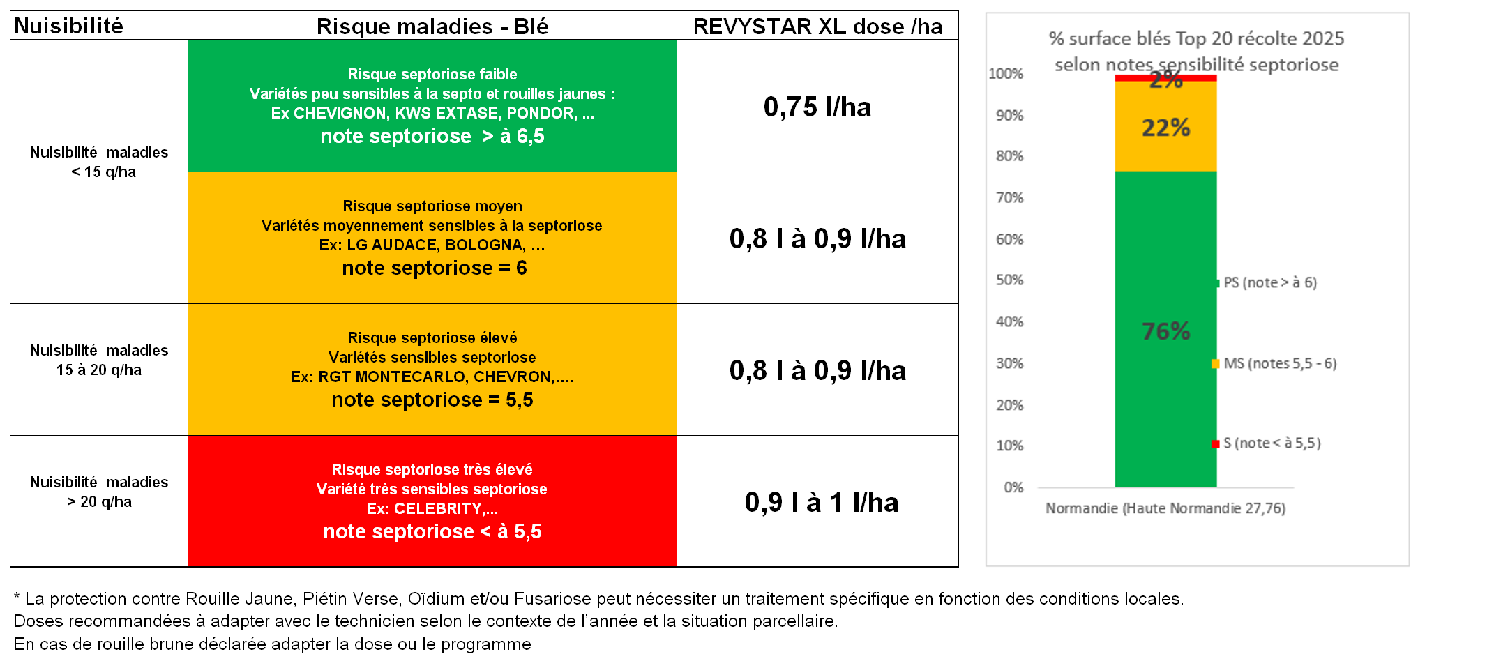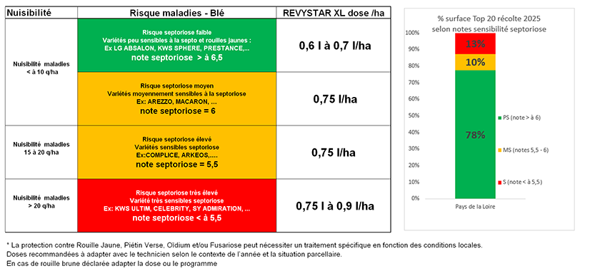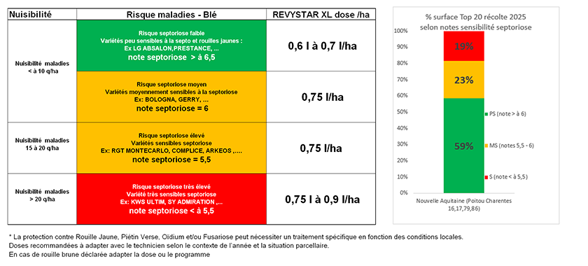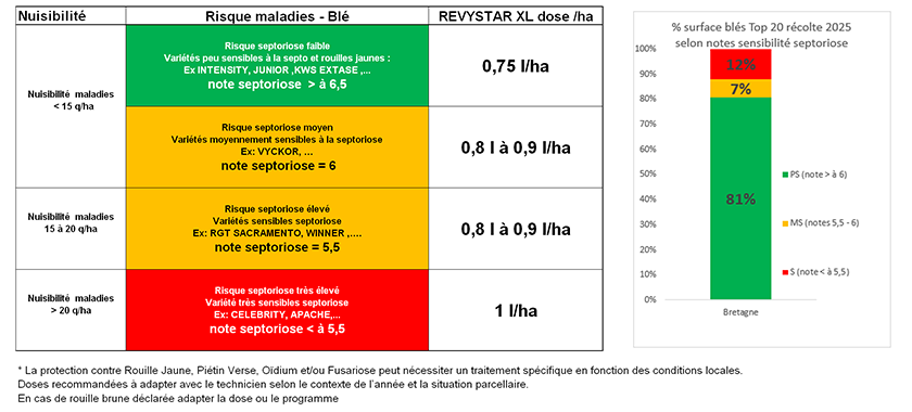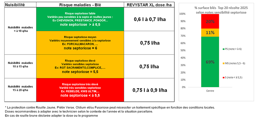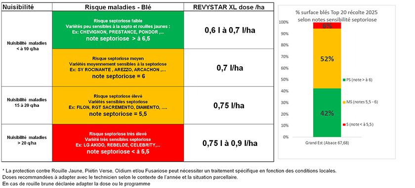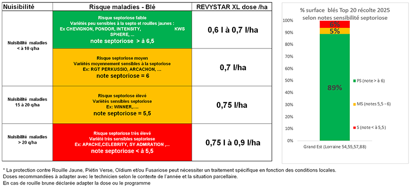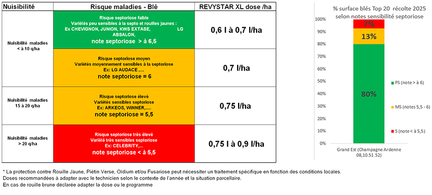 BASF recommande une adaptation de la dose Revystar® XL en fonction de la sensibilité variétale à la septoriose et de la zone pédoclimatique.