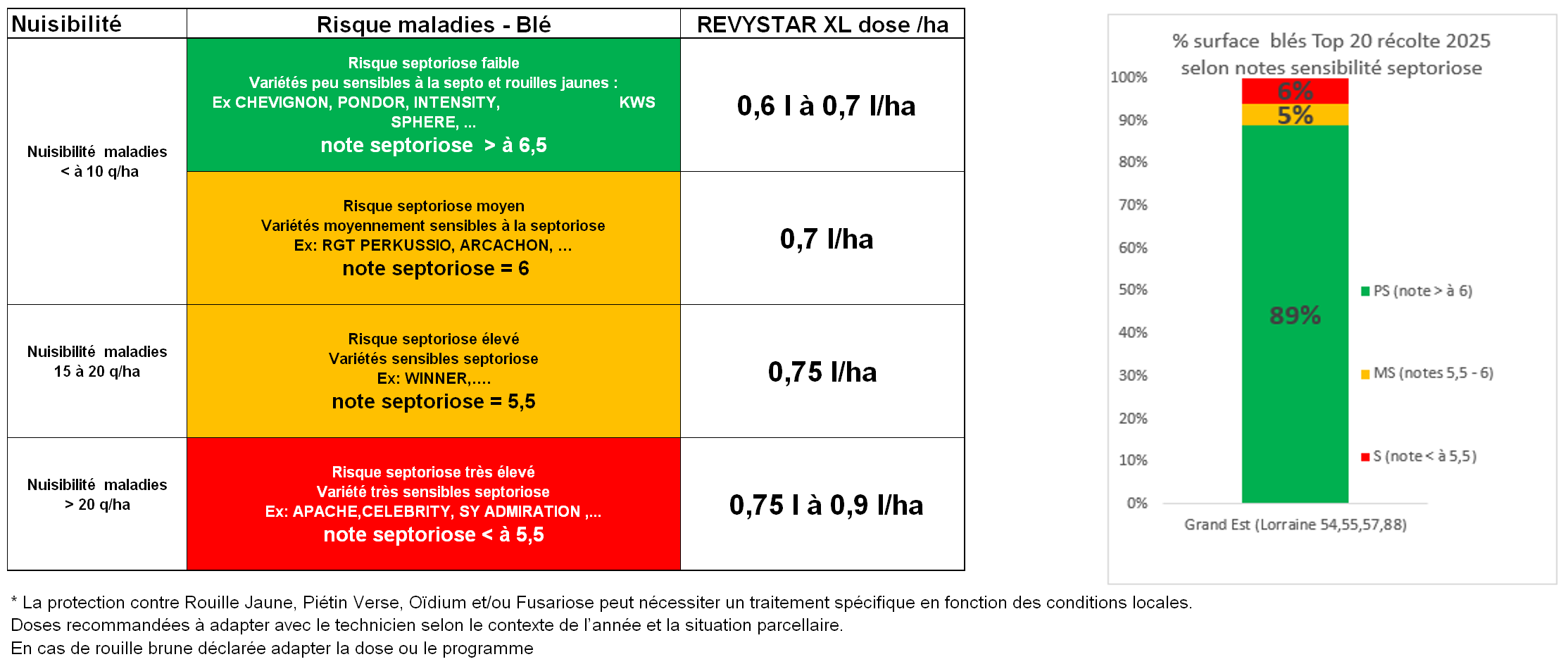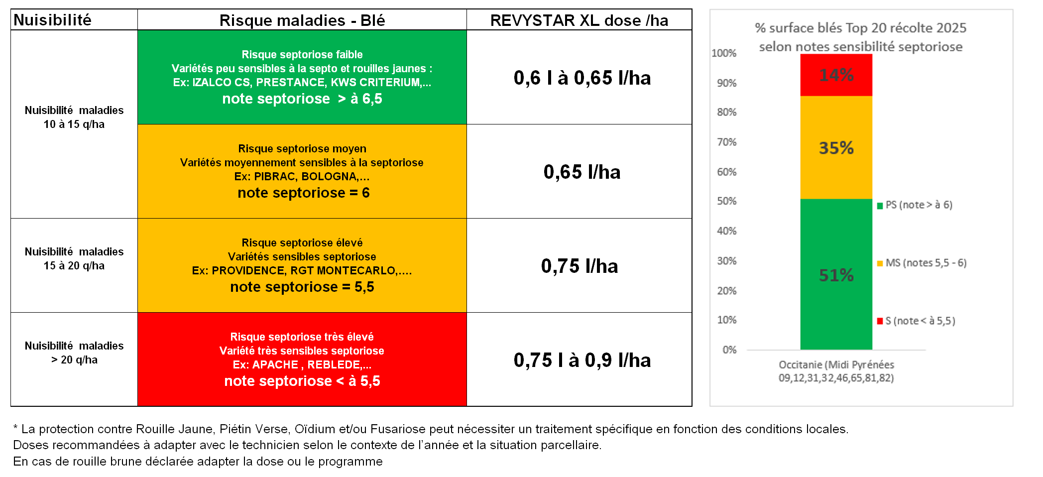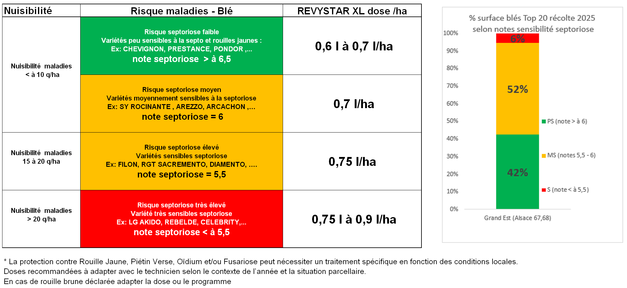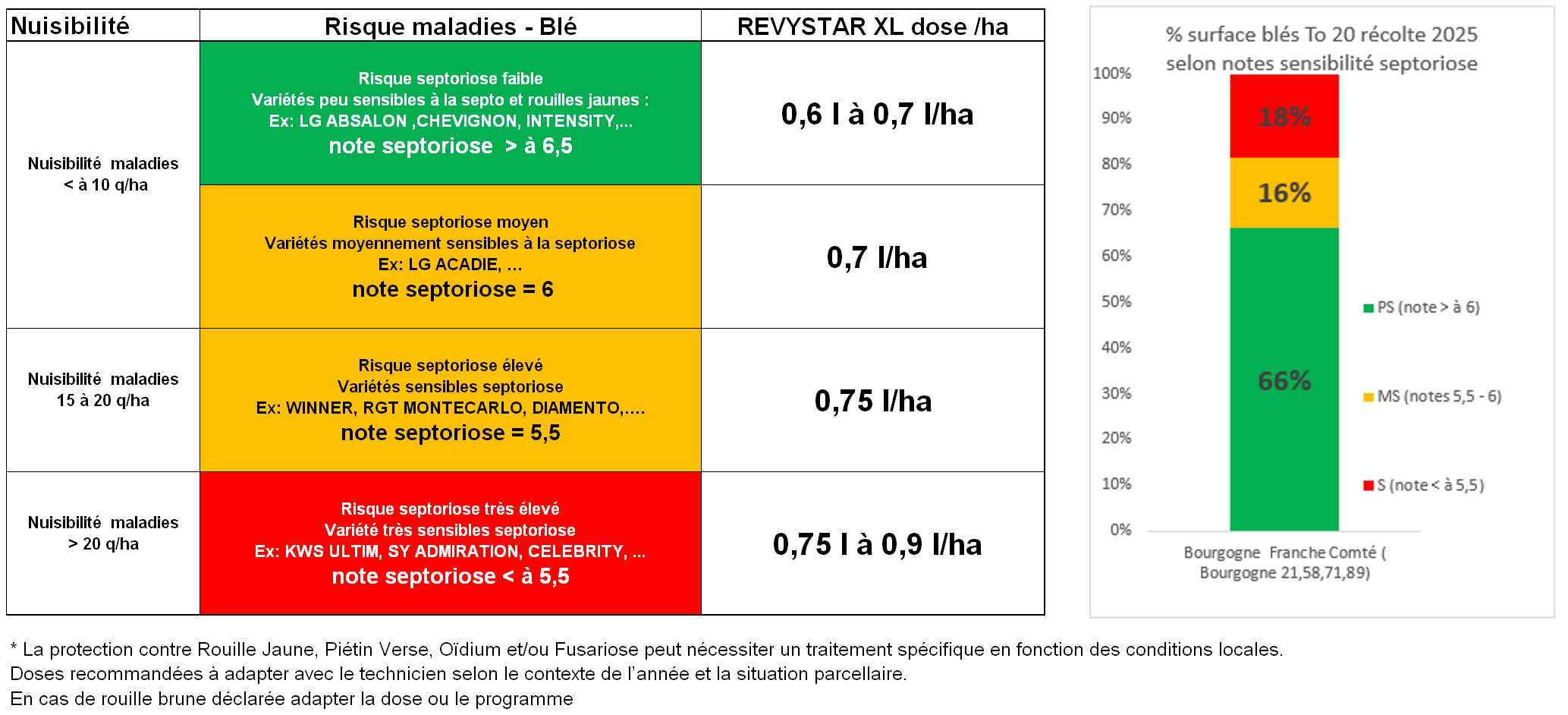 BASF recommande une adaptation de la dose Revystar® XL en fonction de la sensibilité variétale à la septoriose et de la zone pédoclimatique.